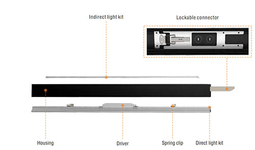 Viewline Linear has two types, direct type and indirect-indirect type. Direct lights provide services for the workstations, while indirect lights can enhance the uniformity of the entire task area, thereby creating a balanced luminous environment through the reflection of the ceiling.